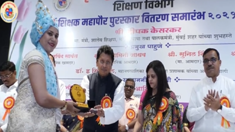 Brihanmumbai Municipal Corporation’s ‘Adarsh Shiksha Paur Puraskar’ for 2021-22 was presented to 50 exemplary teachers by Mumbai City Guardian Minister Deepak Kesarkar on Thursday. The form of this award is Rs.10 thousand each, certificate, memento.